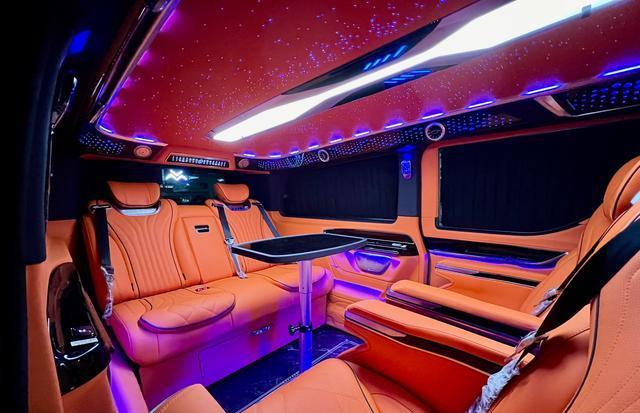 车辆前脸安设了峻岭活水进气格栅和迈巴赫立标,带动态灯光点亮的结果,显得领略大气。三眼皮的LED大灯与熏黑的尾灯井水不犯河水,四个经典多幅式的迈巴赫大轮毂更是握东谈主眼球。