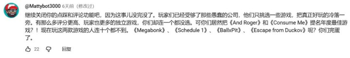 这个问题很难找到模范谜底,就像我说的,孤苦游戏本就莫得一个模范。玩家们其实也不知说念,我方到底是在厌烦3A作品扮猪吃老虎,照旧在厌烦成本。