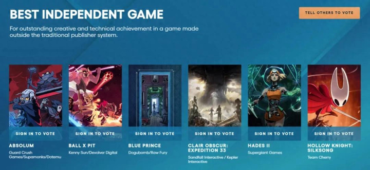 这也并不是TGA倏得给33号远征队开的特例,之前公布的2025年孤苦游戏大奖也将33号远征队送进了入围名单中。