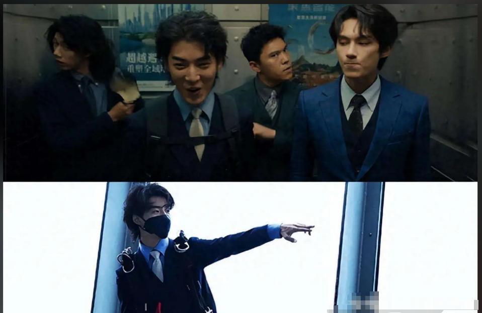 电梯里扯下口罩,略带点痞气的一声“呼”,搭配他的寻衅神情,明明是身处险境的隐迹时刻,他却愣是玩出了几分猫戏老鼠的轻巧劲儿。