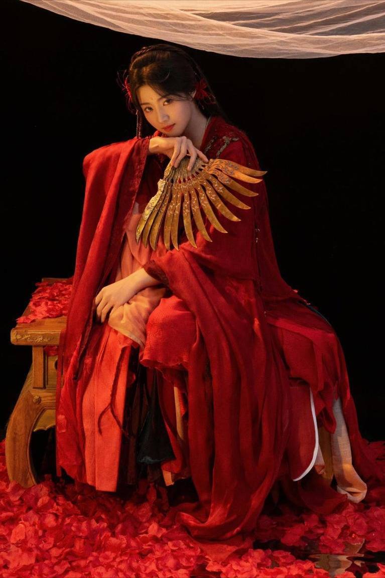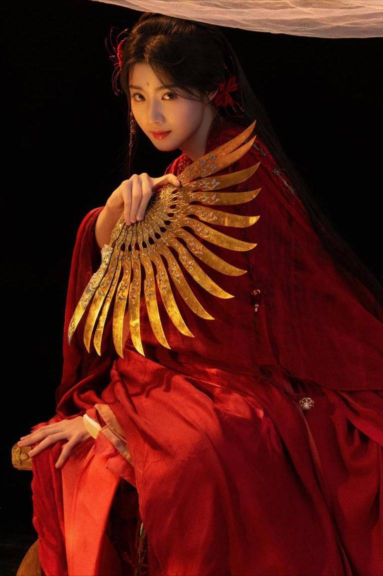 最令东谈主动容的是那组如梦似幻的像片:卢昱晓手执羽翼状折扇,白纱如水般流泻而下,红衣在光影中流动,造成红金白三色交汇的画面。每一帧齐如同经心考试的画卷,细节之处,彰显着她对衣饰和扮演的极致追求。网友纷纷颂扬:“每一张齐是艺术品,她确实懂得何如用服装评释故事。”