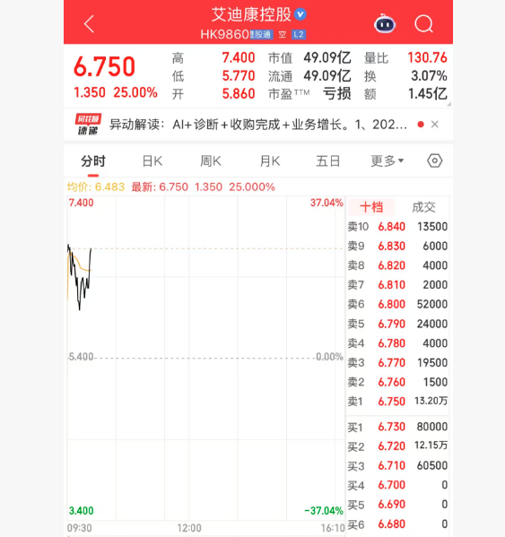 上证报中国证券网讯1月27日,艾迪康控股开盘大涨,一度涨逾30%。落拓9时59分,该股报6.75港元/股,高涨25.00%。