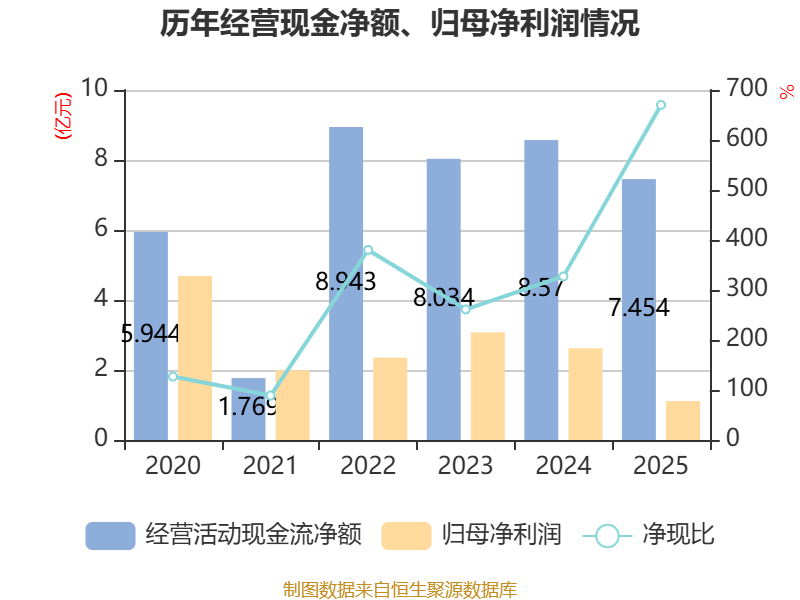 欺压2025年,公司谋略活动现款流净额为7.45亿元,同比着落13.02%;筹资活动现款流净额-3.53亿元,同比减少5575.82万元;投资活动现款流净额-3.13亿元,上年同时为-7.77亿元。