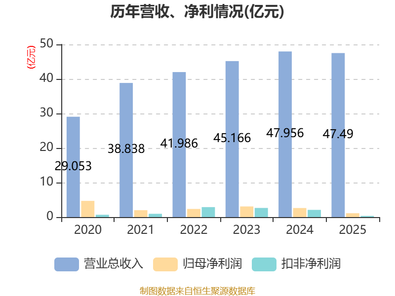 中证智能财讯安洁科技(002635)3月28日表露2025年年度证据。2025年,公司结束贸易总收入47.49亿元,同比着落0.97%;归母净利润1.11亿元,同比着落57.56%;扣非净利润3305.7万元,同比着落84.12%;谋略活动产生的现款流量净额为7.45亿元,同比着落13.02%;证据期内,安洁科技基本每股收益为0.17元,加权平均净钞票收益率为1.90%。公司2025年度分拨预案为:拟向整体鼓舞每10股派现1.5元(含税)。